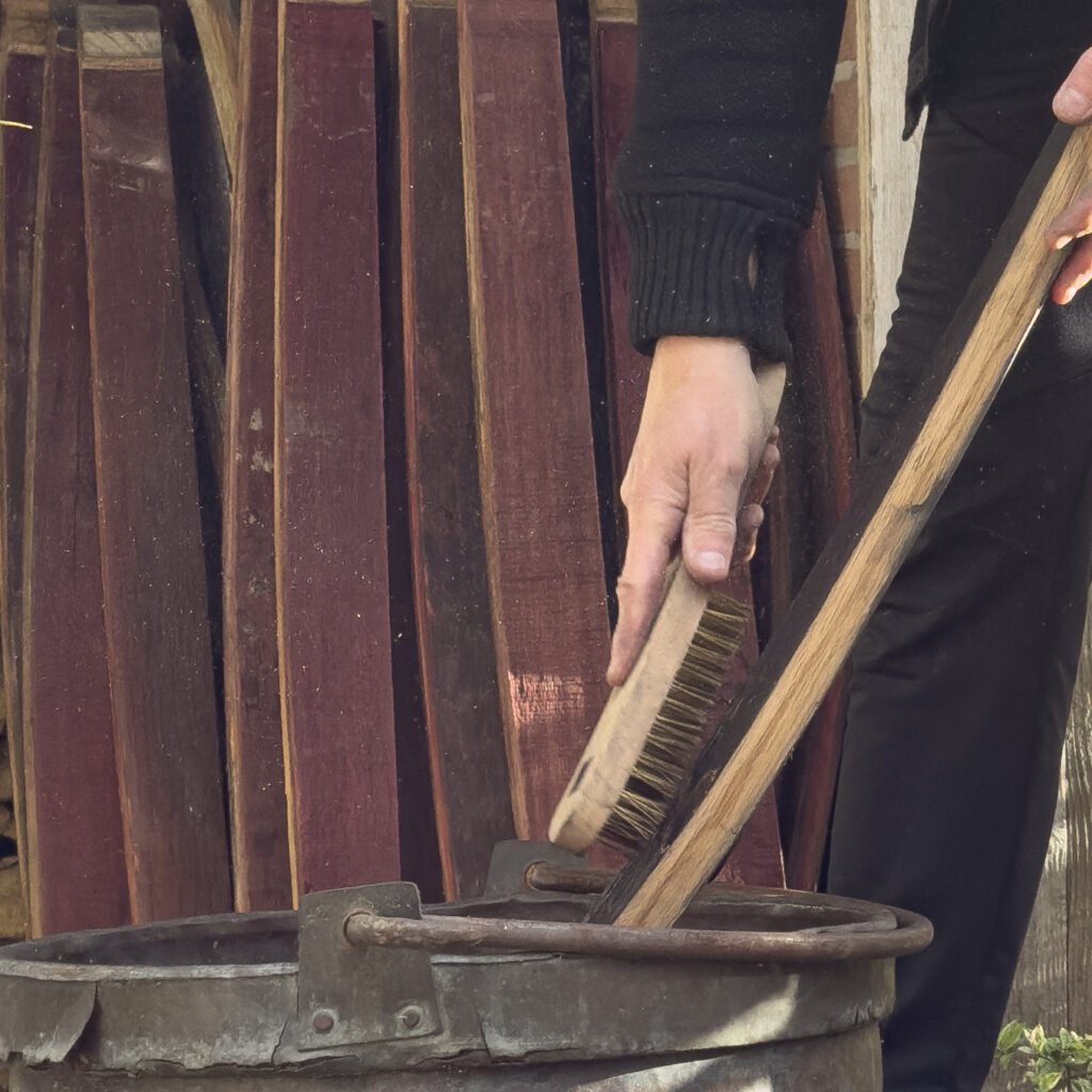 Vervolgens worden de duigen schoongemaakt, bij Whisky wordt de verkoolde (gecharrde) binnenzijde met een staalborstel geborsteld om overtollig houtskool te verwijderen. Wel blijft de verkoolde binnenzijde van de duig intact. De Port duigen hebben vaak een gekristalliseerde binnenzijde, ook dat wordt geborsteld om de scherpte te verminderen.