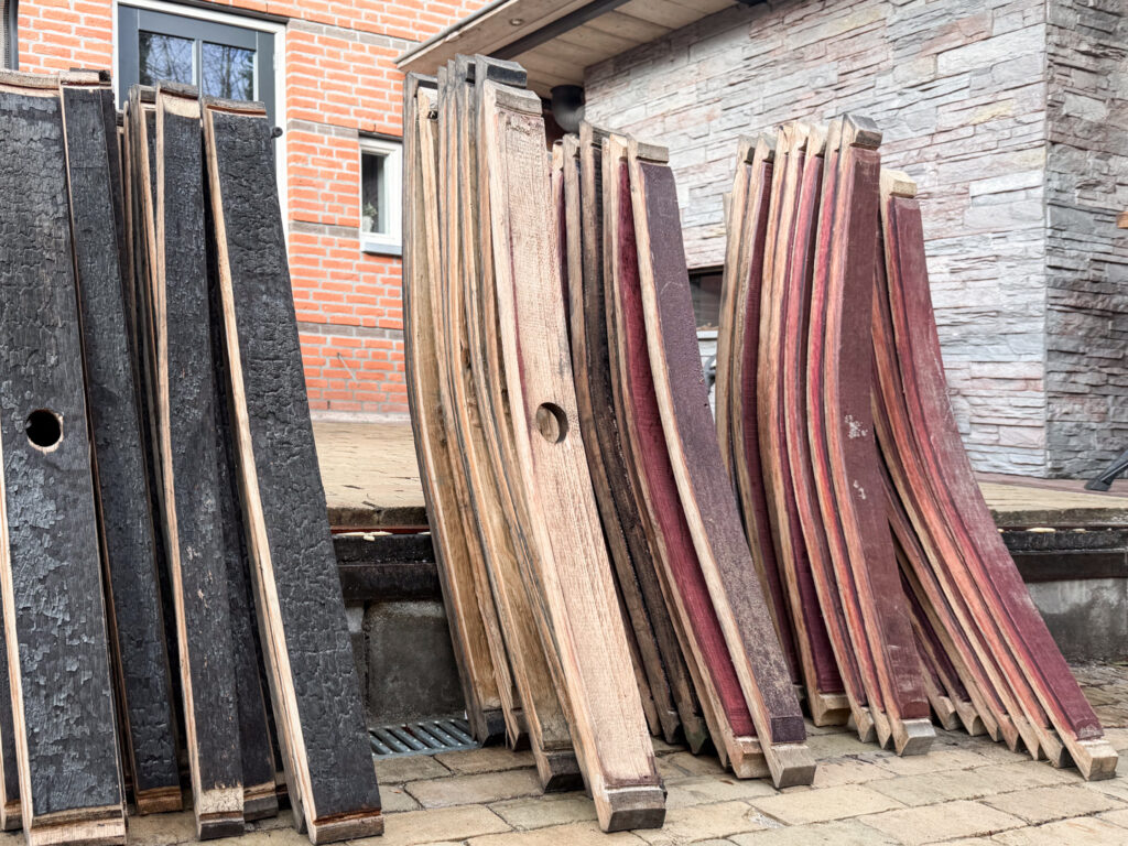 Oude Whisky- en Portvaten worden bij verschillende leveranciers ingekocht om de beste keuze te hebben in vaten. Bij de inkoop van oude whiskyvaten wordt gekeken naar zowel de buiten- als ook de binnenzijde van het vat. Alleen de mooiste vaten worden gebruikt. De metalen ringen worden verwijdert, waarna het vat “in duigen” valt. Niet elke duig is geschikt, sommige zijn zwaar beschadigd of hebben breuk. Anderen zijn te breed of te smal.